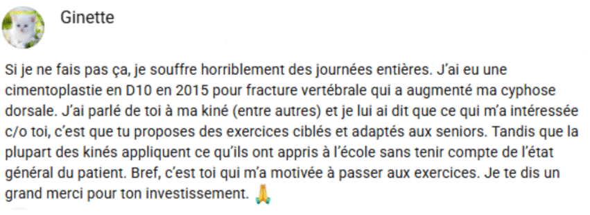 J’aide les femmes qui souffrent de la nuque, du dos et des hanches à se soulager efficacement en 5 minutes, grâce à des étirements sur-mesure conçus pour leurs douleurs.