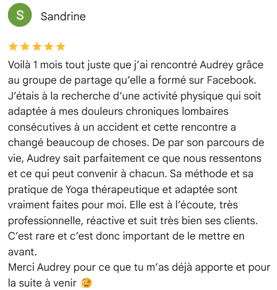 Je suis Audrey, Experte en auto-soulagement et Professeure de yoga thérapeutique.